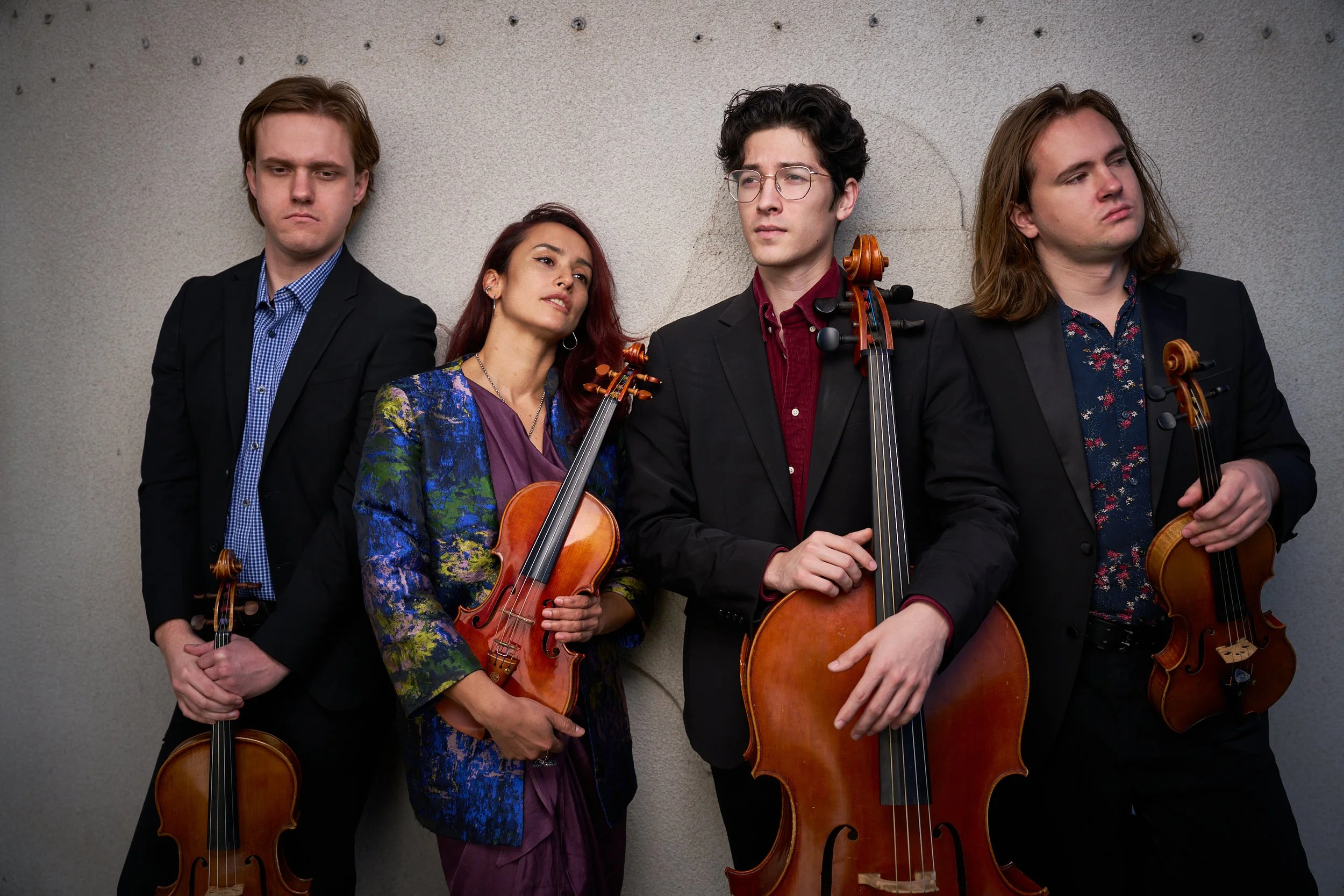 A new string quartet based in New Jersey and New York, the Arachne String Quartet has demonstrated a commitment to the advancement of string quartet playing through collaborations with groundbreaking artists such as Samora Pinderhughes and the Kronos Quartet. It consists of violinists Oliver Costello and Marisol Zapata, Violist Sam Omalyev, and Cellist John Sample.